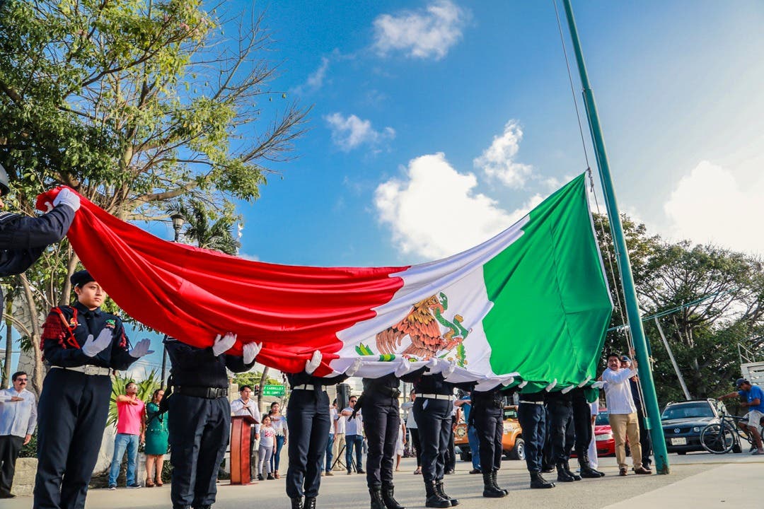 Tulum, Q. Roo.- Al presidir el CXCVIII Aniversario (198°) de la Bandera Nacional el presidente, Víctor Mas Tah, afirmó que es un enorme orgullo y bendición haber nacido en México y que nuestro lábaro patrio nos llena de emoción y exalta nuestros sentimientos por la nación.