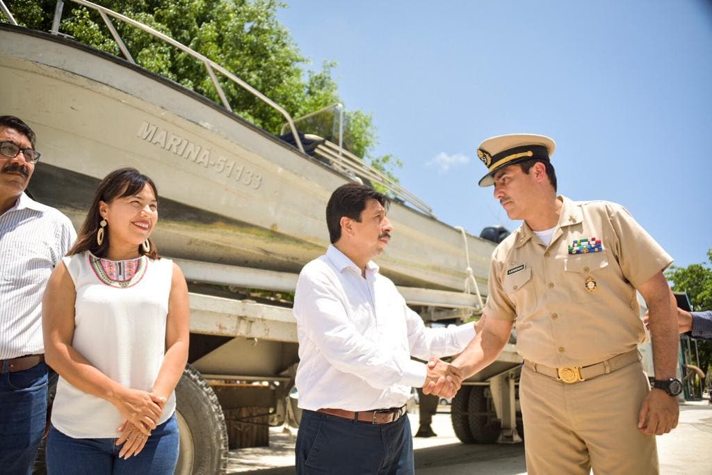 Con el propósito de atender el problema del recale de sargazo en las playas de Tulum, la Marina-Armada de México entregó una embarcación al Ayuntamiento, la cual será utilizada en el Parque Nacional Tulum, unidad que fue recibida por el presidente, Víctor Mas Tah y funcionarios municipales.