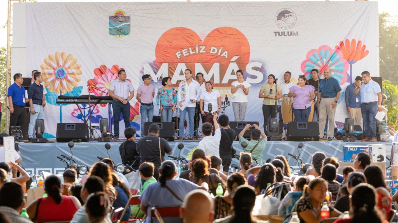 Diversión, regalos, música y muchas sorpresas más caracterizaron la celebración del Día de las Madres organizado por el Ayuntamiento de Tulum y la Iniciativa Privada. El evento que tuvo lugar el domo doble de la Unidad Deportiva, reunió a más de 3,000 madres de familias que disfrutaron de un momento inigualable.
