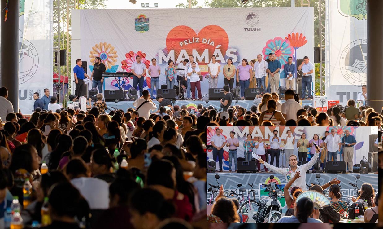 Diversión, regalos, música y muchas sorpresas más caracterizaron la celebración del Día de las Madres organizado por el Ayuntamiento de Tulum y la Iniciativa Privada. El evento que tuvo lugar el domo doble de la Unidad Deportiva, reunió a más de 3,000 madres de familias que disfrutaron de un momento inigualable.