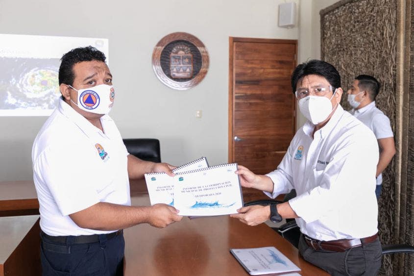 Preparado ayuntamiento para temporada de huracanes: Víctor Mas.- El ayuntamiento está preparado para auxiliar a la población en caso de lluvias torrenciales o huracanes, toda vez que se han establecido las áreas de mayor riesgo en el municipio e integrado Subcomités Operativos Especializados para Fenómenos Hidrometeorológicos para la Zona Maya, de Transición y en los poblados de la Riviera Maya, indicó el presidente, Víctor Mas Tah, en una sesión informativa que le rindió Protección Civil.