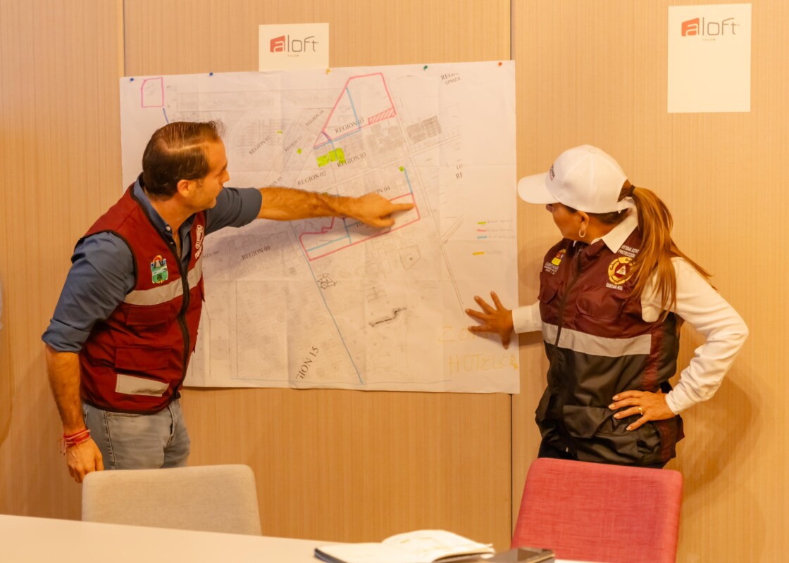 En tulum, la coordinadora nacional de Protección Civil, Laura Velázquez Alzúa, la gobernadora, Mara Lezama, el Presidente Municipal, Diego Castañón Trejo, fijaron la estrategia de prevención y acción en el centro sur del estado, por la proximidad del huracán Beryl