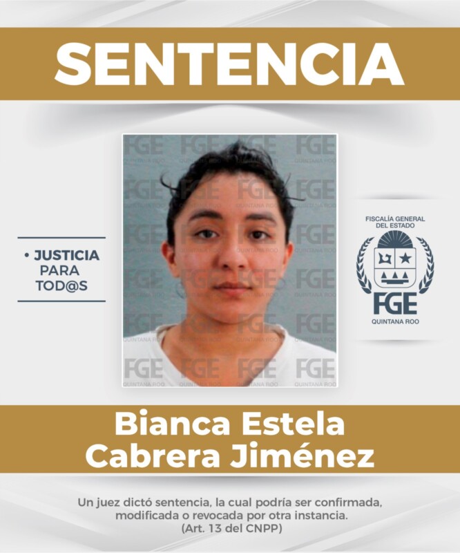 Una sentencia de dos décadas en prisión fue la resolución judicial que recibió Bianca Estela Cabrera Jiménez de 27 años luego de ser encontrada responsable del homicidio calificado en Tulum de su propia madre Blanca Guadalupe, de 55 años.