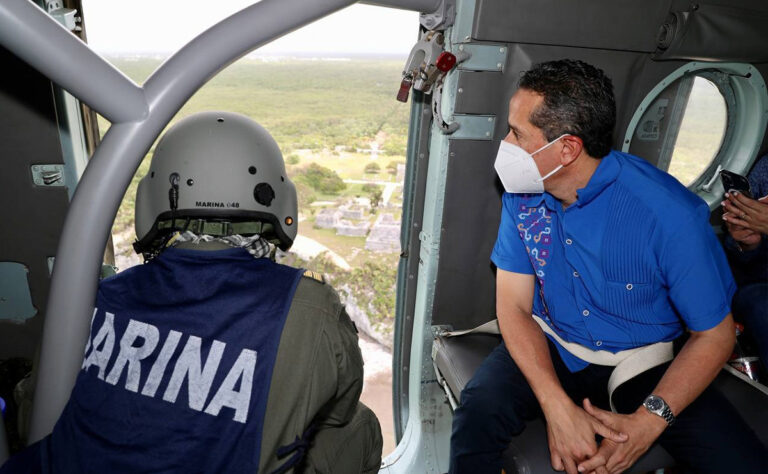 Sobrevuelan Carlos Joaquín y Semar áreas afectadas en Tulum