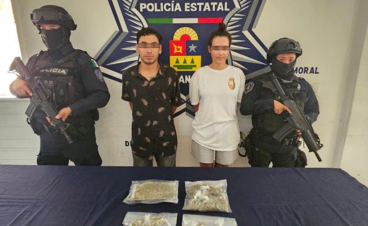 Un hombre y una mujer fueron detenidos por presuntos delitos contra la salud en el municipio de Tulum.