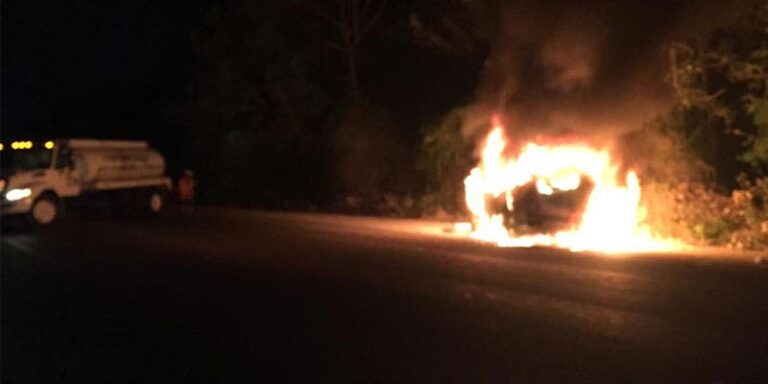 De acuerdo con la Dirección de Bomberos Municipal, alrededor de las 2:15 de la madrugada se reportó el incendio de un vehículo en la carretera estatal Tulum-Cobá, metros adelante de las oficinas de la Fiscalía General del Estado (FGE).