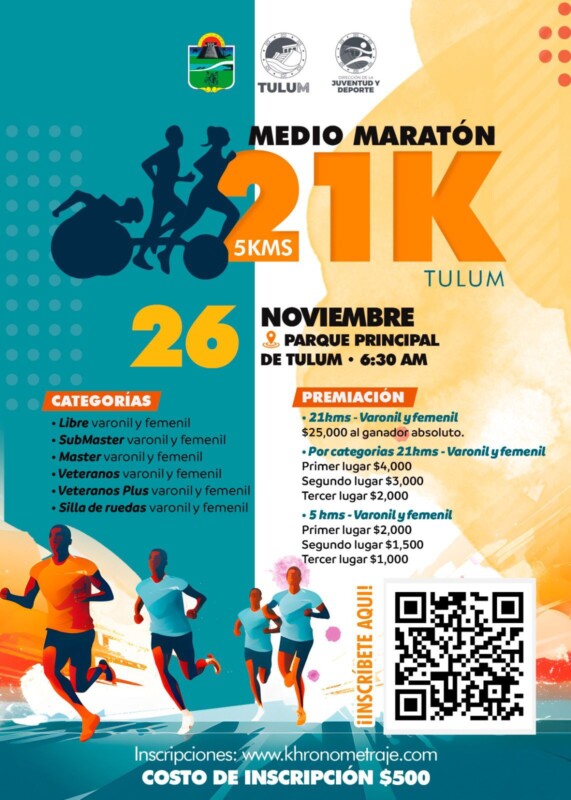 Tulum convoca a las y los atletas para el medio maratón 21 K 2023