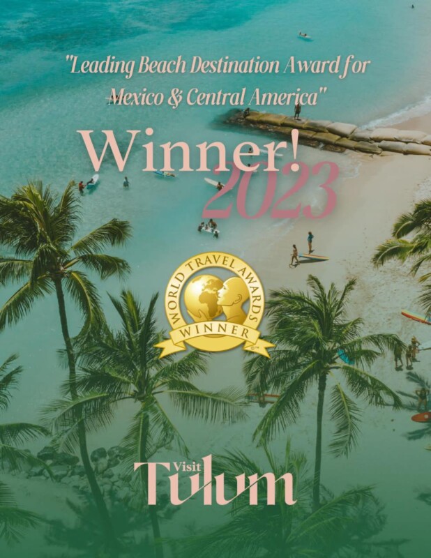 Por quinta ocasión, Tulum fue premiado como destino de Playa, líder en México y Centroamérica en los World Travel Awards 2023, un logro de la comunidad y del gobierno que encabeza Diego Castañón Trejo al preservar bellezas naturales de calidad.