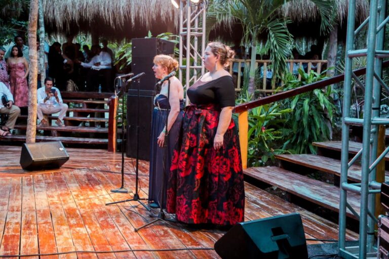 TULUM.- Con éxito se llevó a cabo la Ópera Maya en el poblado Francisco Uh May de Tulum, con la asistencia de ciudadanos, turistas nacionales y extranjeros que acudieron a disfrutar de la interpretación de los sopranos y la belleza natural del sitio que se destinó para esta importante actividad cultural.