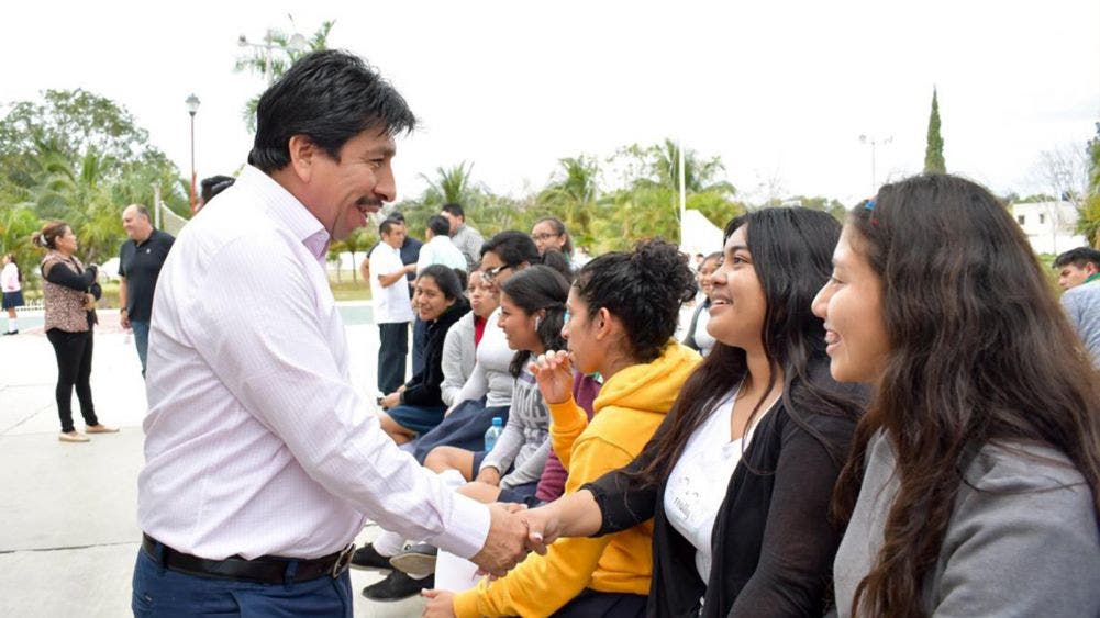 Acompañado de funcionarios municipales y docentes, Víctor Mas Tah, indicó que a través de la Dirección de Educación que encabeza Ramón Díaz Novelo, se dotará a los estudiantes de material formativo para que puedan concluir su perfil de egreso, tales como trajes y vestidos para folclor, así como equipo didáctico para los diferentes talleres que se imparten en la institución educativa.