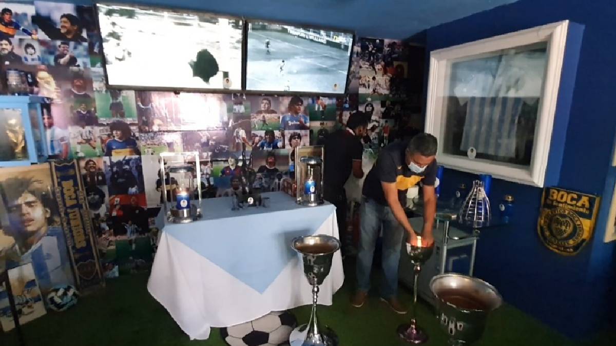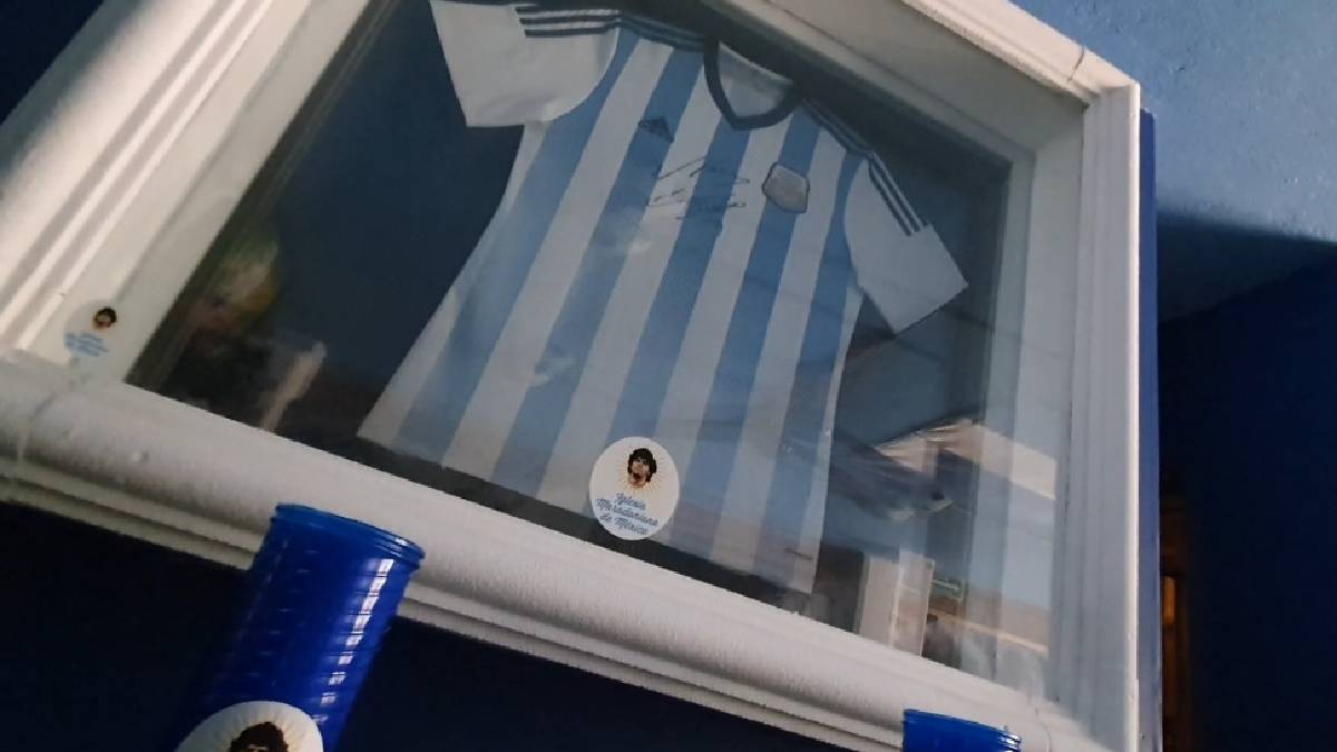 Asimismo, las paredes tienen fotos de la vida de Maradona y hay una playera autografiada.