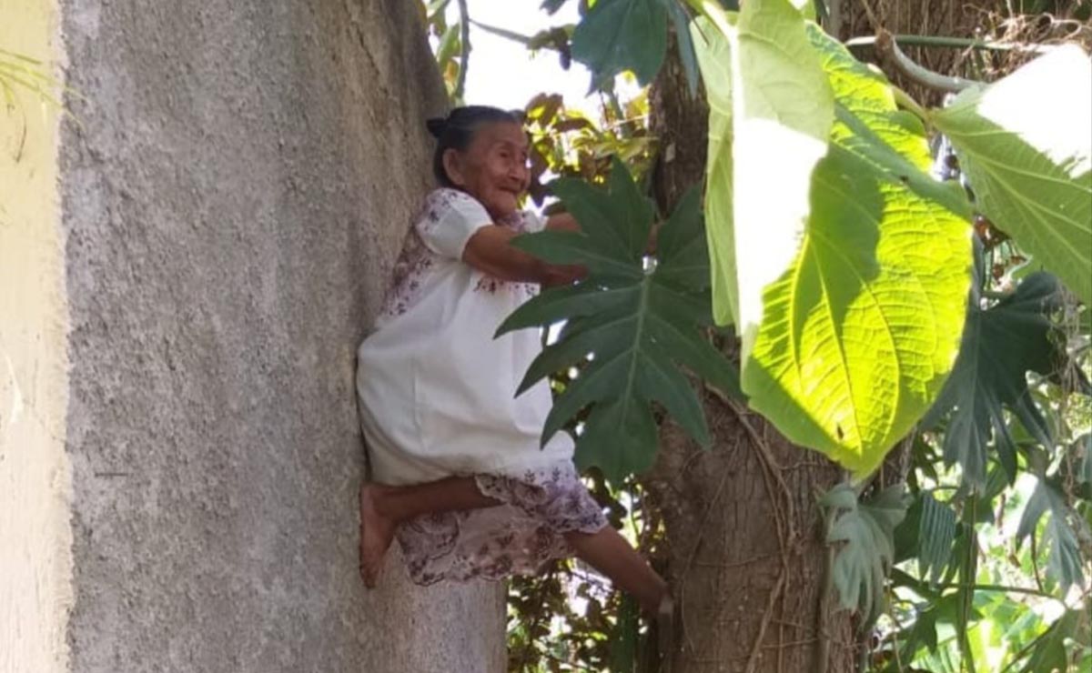 Una abuelita de Yucatán se hizo viral luego de que trepara un árbol con mucha facilidad para bajar frutos.
