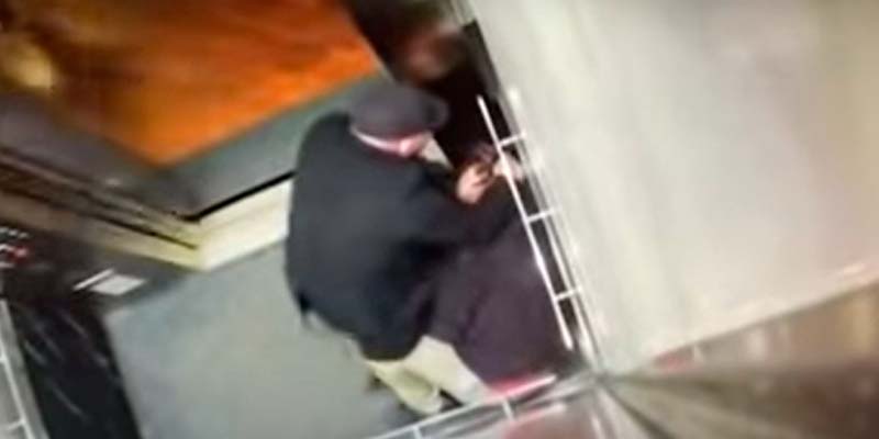 Las cámaras de seguridad captaron el momento en el que el sujeto se sube de manera forzada a un elevador con todo y el espacio reducido del lugar.
