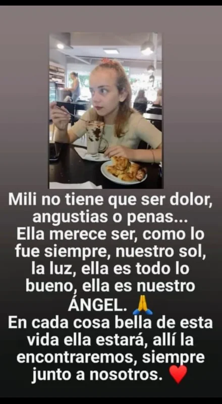 No obstante, na familiar de la menor, su tía Laura Luque hizo un posteó en el que despertó el alerta: «Hola a todos. Mi nombre es Lali… Hago público esto que estoy viviendo. Ella es Milagros, mi sobrinita… quien hoy perdió la vida haciendo un reto de TikTok… por favor pido que compartan… mi flia y yo no tenemos consuelo…», escribió en Facebook.