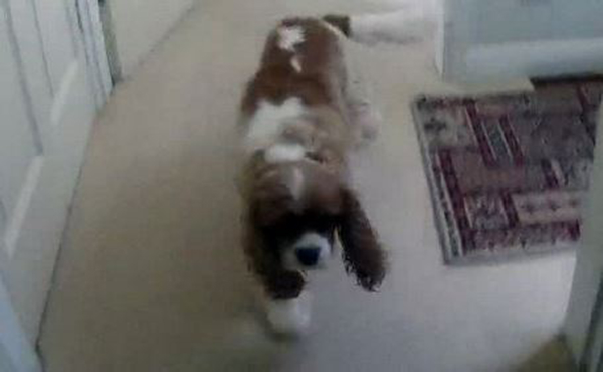 Ante el hallazgo, la policía se apresuró a liberar cuidadosamente Toby, que, pese a estar bien, tenía hambre y sed, como se aprecia en una imagen difundida en la que se ve como el perro la sigue hacia la cocina.