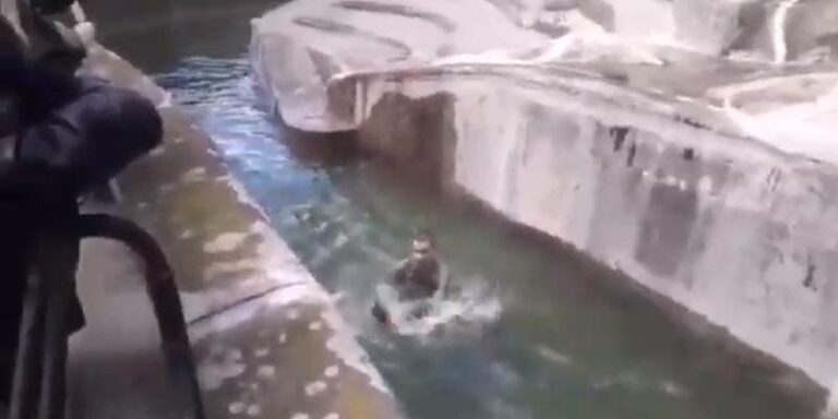 En un video que fue difundido en redes sociales se observa como un hombre logra ingresar al zoológico de la ciudad de Varsovia, e intenta ahogar a unos de los osos.