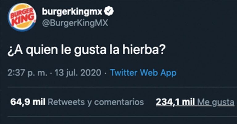 Burger King: ¿A quién le gusta la hierba? Fuerte polémica en Twitter.- Una fuerte polémica se desató Burger King en Twitter, luego de lanzar épica pregunta que evidentemente tuvo un sinfín de respuestas.