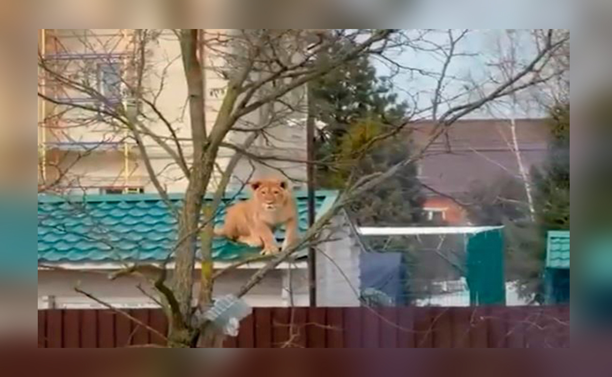 Rusia. – El avistamiento de animales salvajes puede ser emocionante, pero que aparezca una leona en la azotea de un vecino, sin duda deja sin aliento a cualquiera.