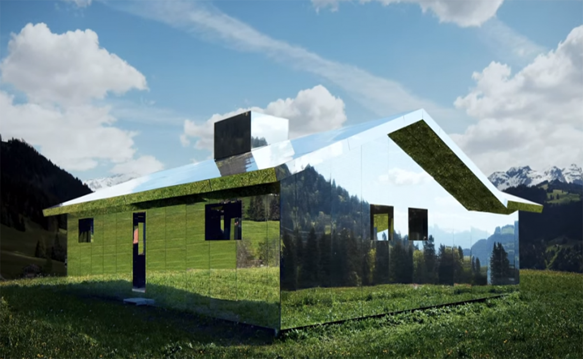 Suiza. – Doug Iitken, artista estadounidense, diseñó una casa cubierta de espejos en los Alpes suizos, una obra por demás espectacular.