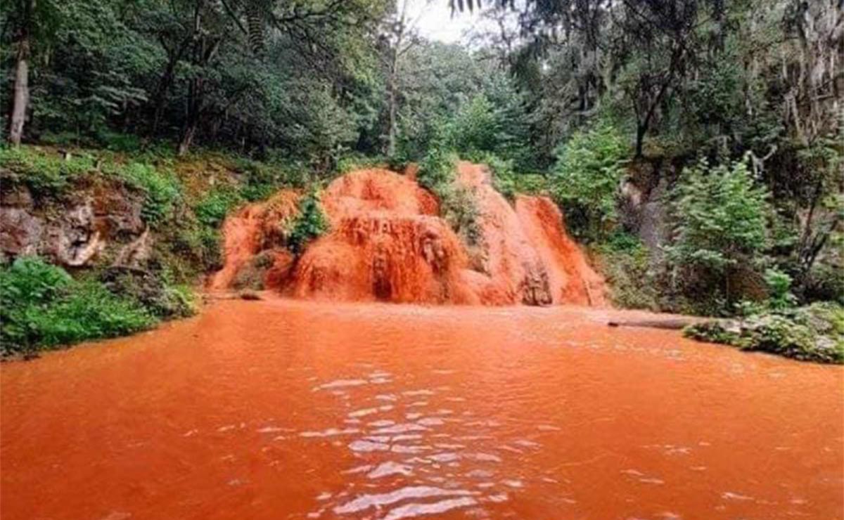 En Nuevo León las cascadas y arroyos del Parque Turistico El Salto, en Zaragoza se pintaron de color naranja tras las lluvias registradas el fin de semana.