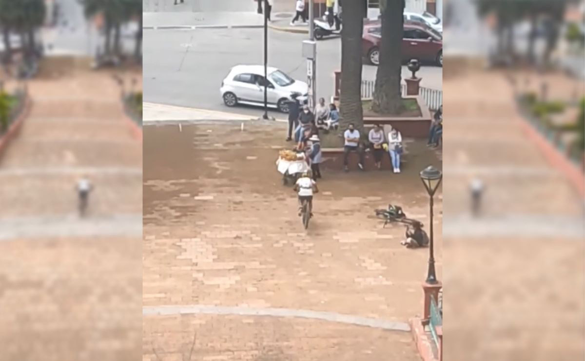 Ciudad de México. – La embestida de un ciclista a un puesto ambulante quedó grabado en video y se populariza en redes sociales, al captar el momento exacto del accidente.
