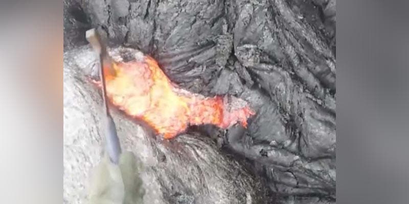 Científico arriesga su vida para tomar muestra de lava