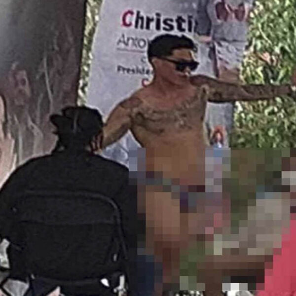 En las imágenes se puede observar mujeres sentadas en el estrado, mientras que el stripper tenía como fondo lonas con el logo del partido y el nombre del candidato Chistian Antonio Flores.