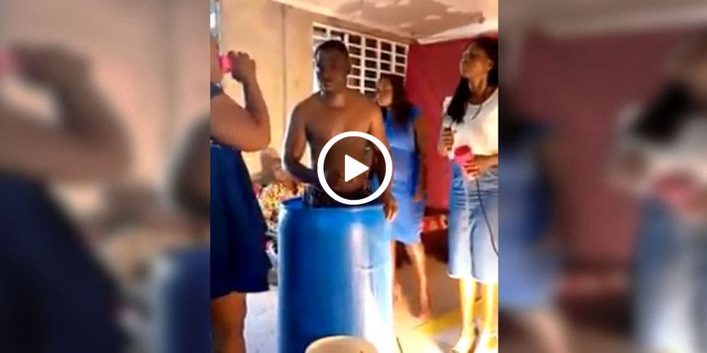 En ese sentido, como se aprecia en el fragmento, el hombre se sumergió en un tambo color azul, para que su asistente les proporcione un vaso a los asistentes, quienes además gritaban de emoción al beberla.