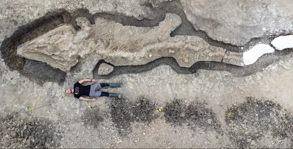Paleontólogos británicos realizaron uno de los hallazgos mas importantes de este país, localizaron en un lago el fósil del “dragón marino” más grande jamás excavado en el Reino Unido, un ictiosauro de mas de 180 millones de años.