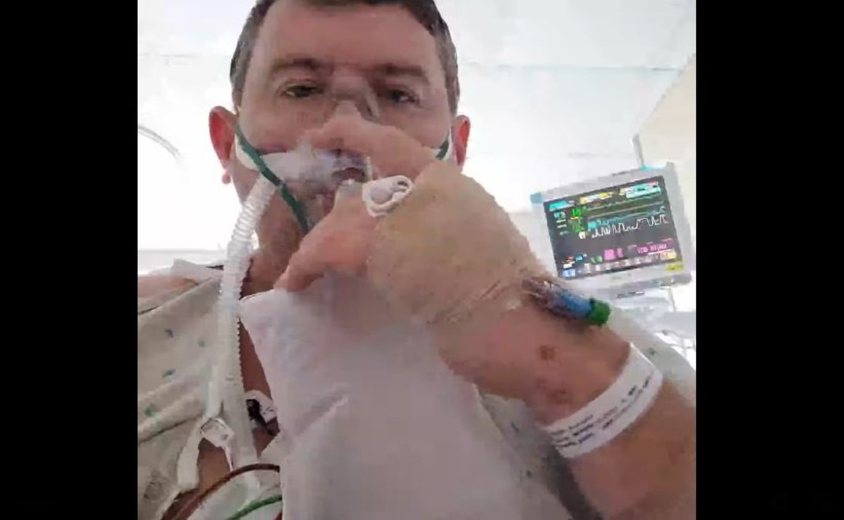 El hombre de 43 años de origen estadounidense ha compartido una serie de videos dando su testimonio sobre la negativa de vacunarse y lo terrible que ha sido estar postrado sin poder respirar.
