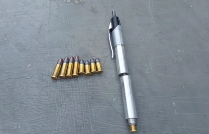 Se trata de una pluma-pistola, que en vez de tinta, contenía en su interior ocho cartuchos del calibre .22 listas para ser usados, por lo cual sin pensarlo dos veces, los agentes aseguraron a este imitador de agentes secretos.