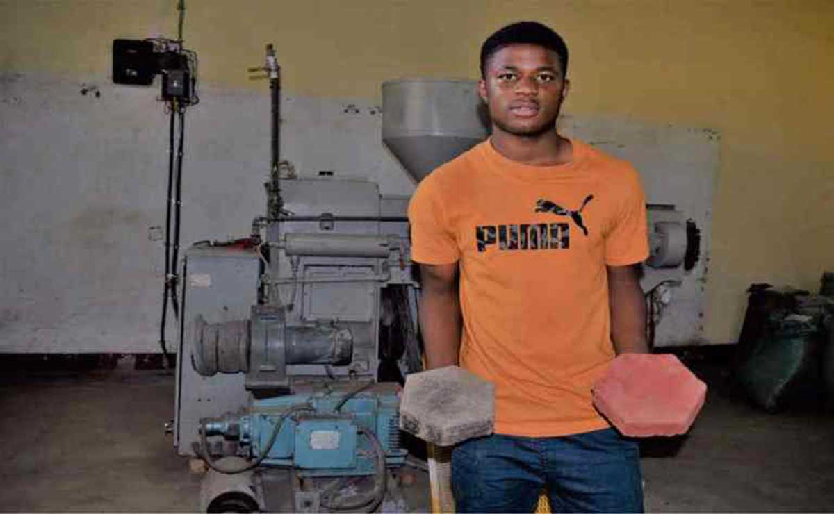 Edgar Edmund, creo un prototipo para elaborar materiales de construcción recolectando desechos plásticos de las calles de la ciudad para sus primeras pruebas.