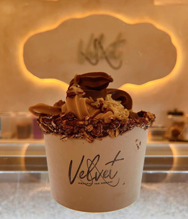 Sin embargo, el local donde se sirvieron, llamado Velvet, funciona bajo un sistema de autoservicio: tú decides cuánto te sirves, lo pesas y pagas… y parece que la báscula ese día no tuvo clemencia.