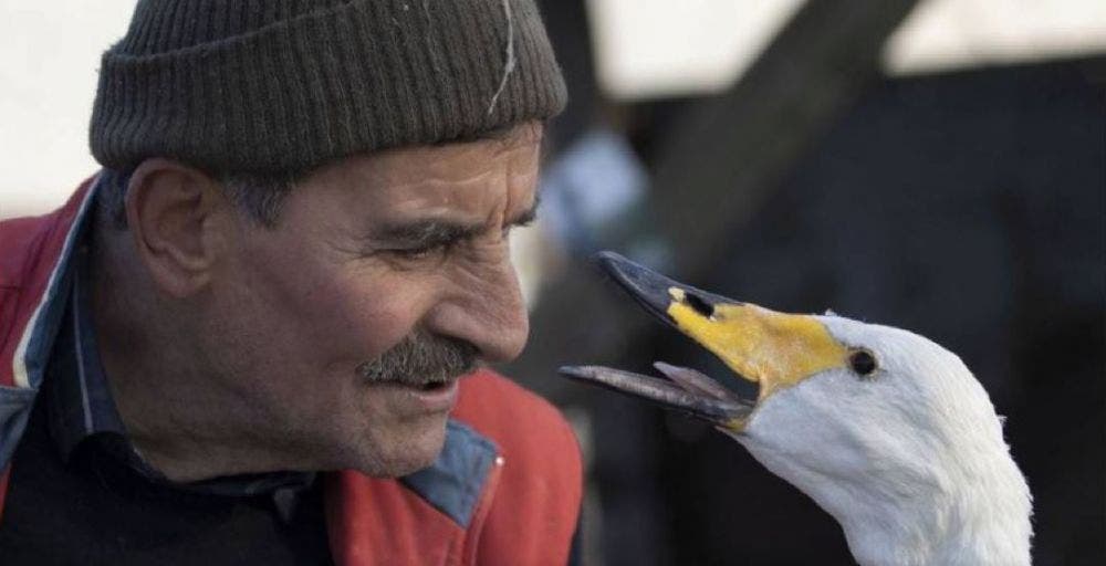 El excartero vive en una gran granja, lo que permite que el cisne pueda estar en su hábitat natural, junto a otros animales.
