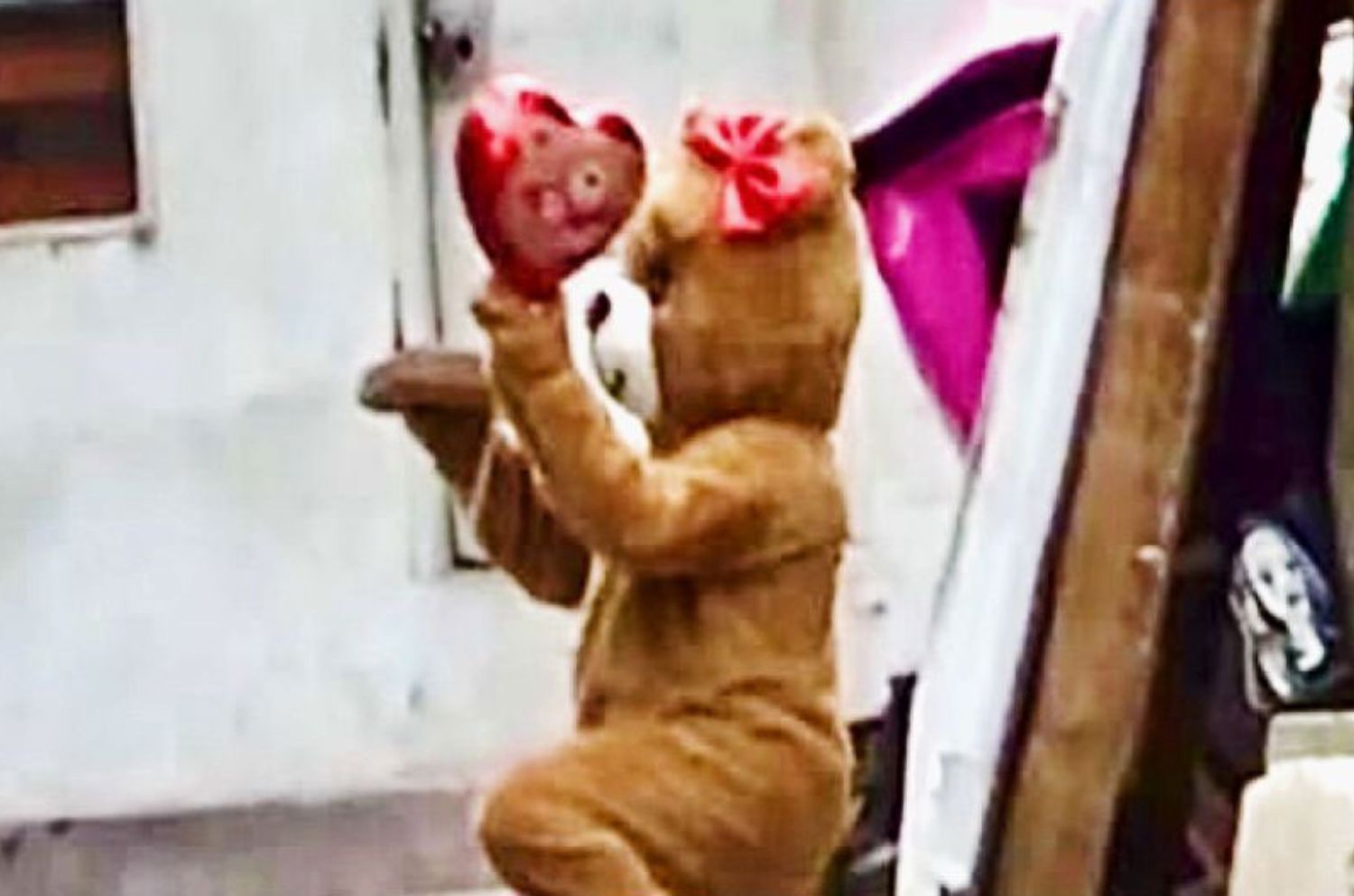En San Valentin, policía disfrazado de oso atrapa a narcomenudista