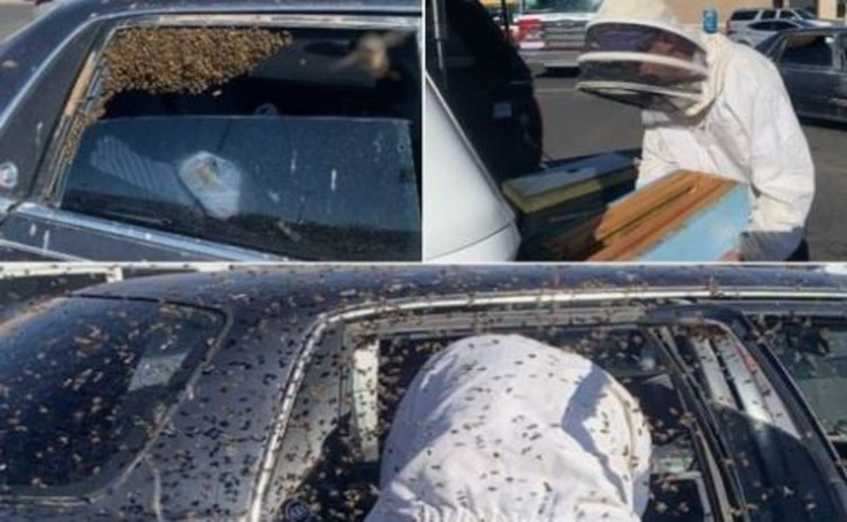 Estados Unidos.- Mientras los dueños de un vehículo se fueron de compras un enjambre de abejas se apoderó de la unidad, cuya parte trasera quedó tapizada por lo insectos.