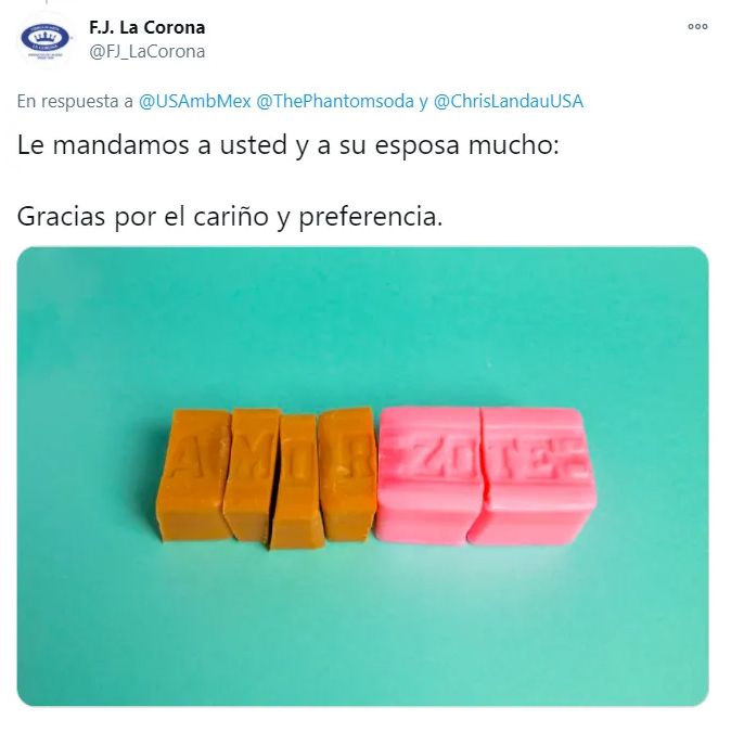 De hecho, la fábrica de jabón La Corona, que produce el jabón Zote, aprovechó la publicidad y publicó un copy con una imagen en donde le mandaba mucho “Amor Zote” al exdiplomático.