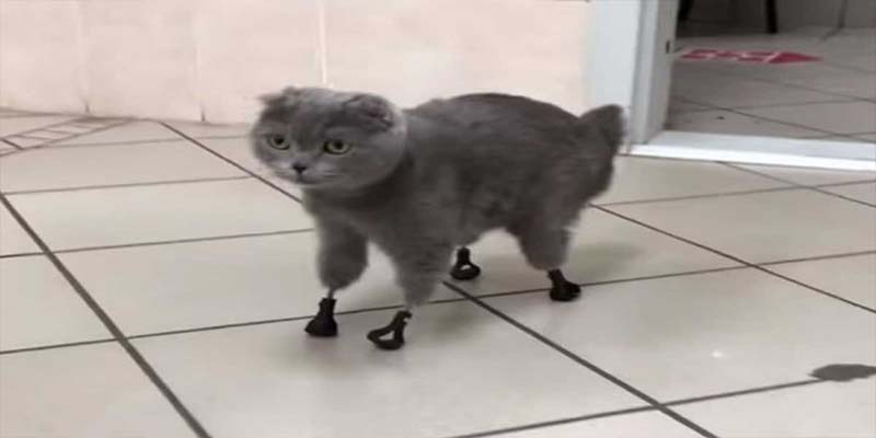 Tras lo sucedido la felina fue trasladada a un hospital en donde le implantaron las prótesis de las patas, las cuales fueron creadas por un equipo científico de TPU mediante una impresora 3D.