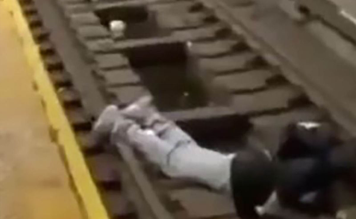 Un hombre se desmayó y cayó en las vías del metro en la ciudad de Nueva York, por lo que policías y pasajeros lo rescataron.