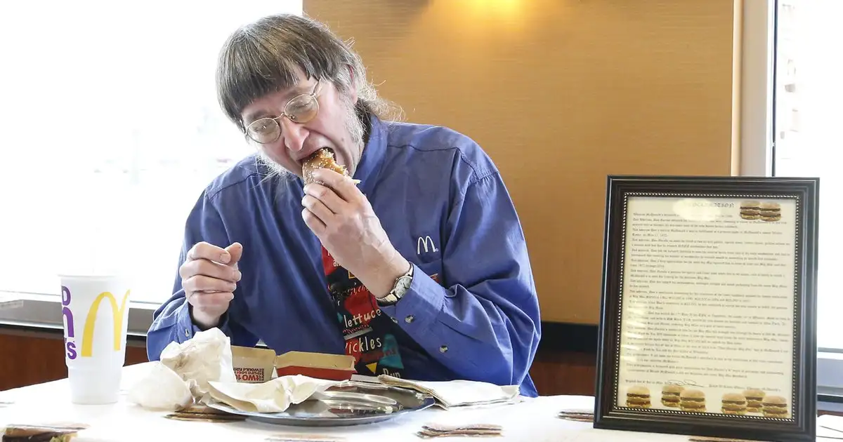 Casi embajador de la marca, el aficionado a las hamburguesas ha comido por lo menos dos «clásicos” de la cadena de hamburguesa diariamente a través de cinco décadas, solo ha interrumpido su hábito de consumo en ocho ocasiones.