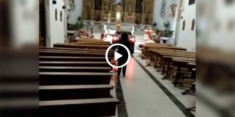 A través de las redes sociales difundieron un video en el que se observa a la camioneta del hombre al fondo de la iglesia en donde se encuentra el altar.