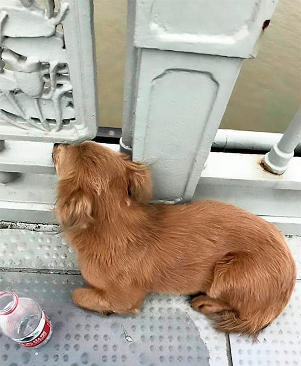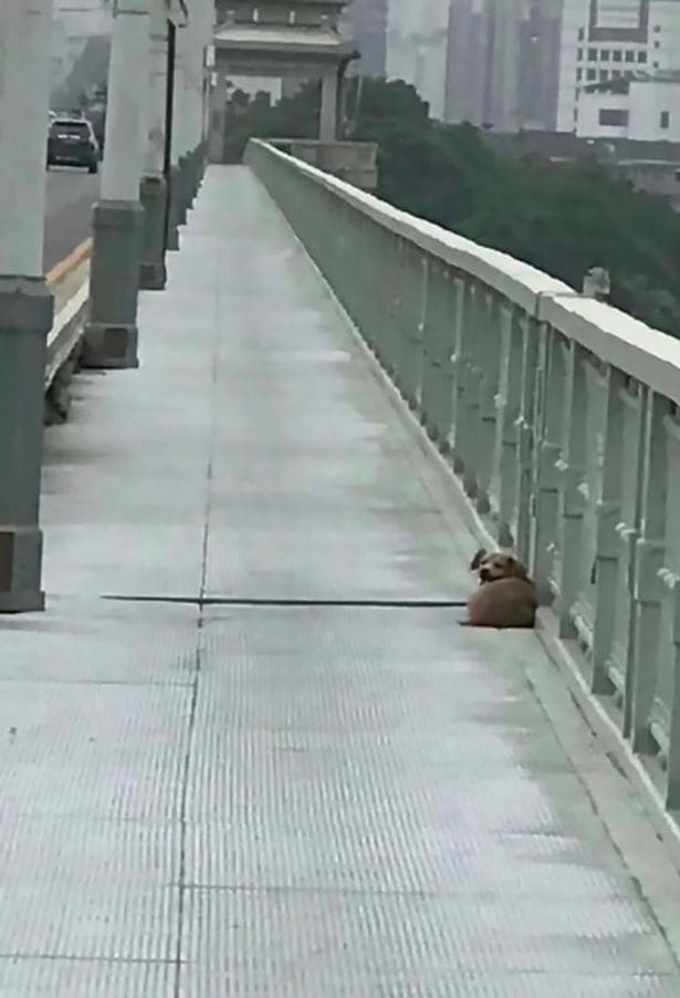 China. – En redes sociales se populariza la historia de un peludo quien fue captado sentado en el pavimento del puente Yangtze, en China.