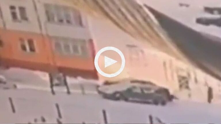 El increíble video fue grabado por una cámara de vigilancia, que captó cómo la dama cayó desde el noveno piso de un edificio a un montaña de nieve en el suelo, para acto seguido, levantarse a los pocos segundos, levantarse e irse andando por su propio pie.