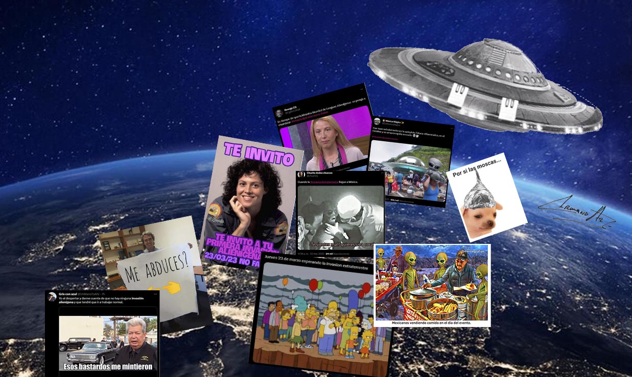 Desde hace días, le especulación de una hostil invasión de extraterrestres revelada por un supuesto «viajero del tiempo», causó furor en las redes sociales; el supuesto asedio interplanetario según quien propagó el mensaje debía ocurrir este 23 de marzo, sin embargo, la única invasión ocurrió con los clásicos memes.