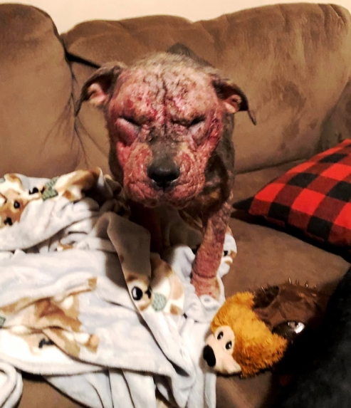 Los veterinarios le diagnosticaron sarna demodéctica e infecciones secundarias de la piel, por lo que le recetaron fuertes antibióticos y tuvo que pasar por un tratamiento agresivo.