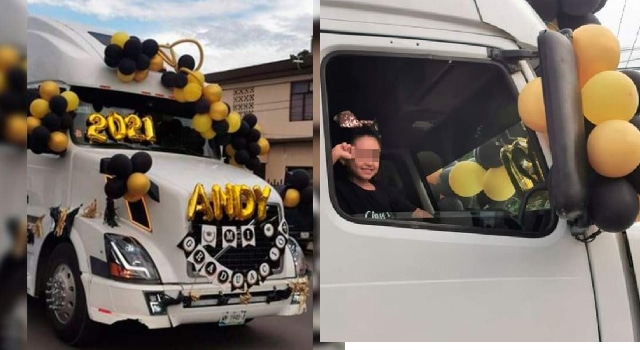 Sin duda, Andy nunca olvidará su graduación, pues realizó el recorrido en la unidad más llamativas, que lucia globos de color negro y dorado.
