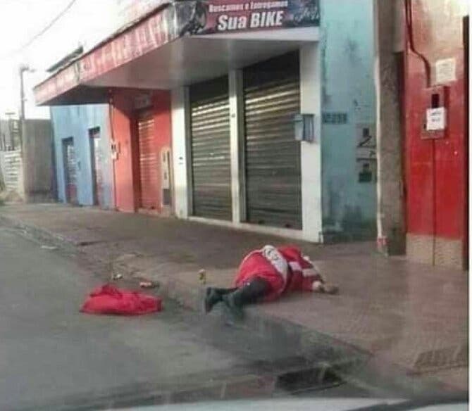 Santa Claus borracho luego de entregar regalos en Navidad.