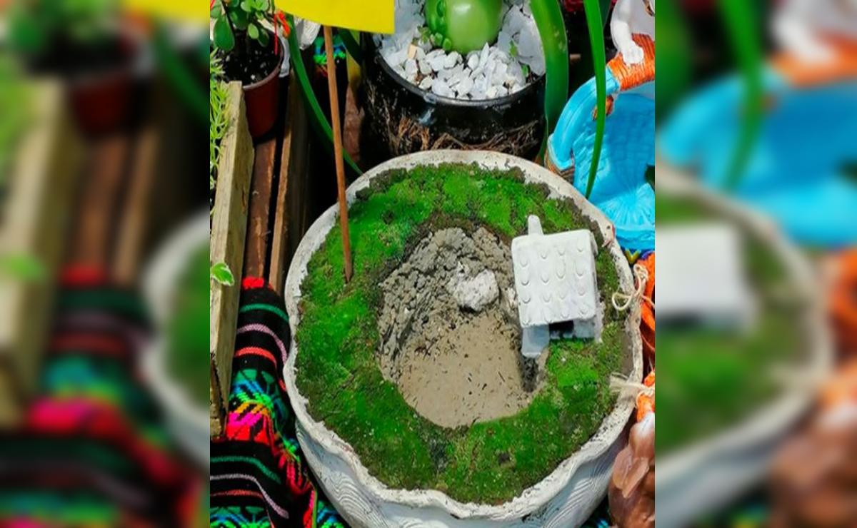Detalló que la maceta tiene tierra y plantas reales, emulando al fenómeno surgido en el municipio de Juan C. Bonilla.