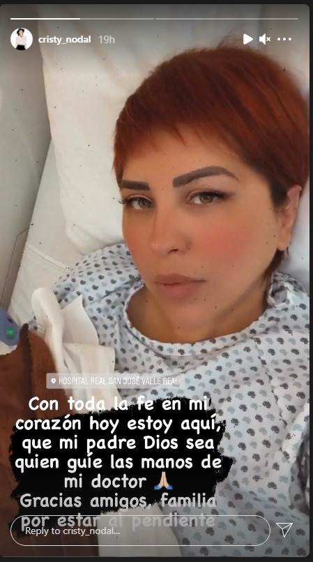 De acuerdo a la publicación de Cristina Nodal Jiménez, nombre completo del también compositor compartió un par de fotografías donde se le ve recostada en una cama de hospital.