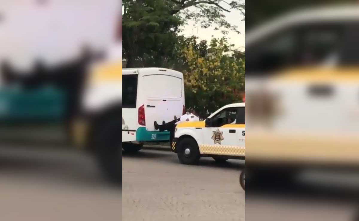 La fuerza del policía se ve reflejada cuando ambos vehículos van avanzando sobre el asfalto hasta un punto donde no generará conflicto para otros automovilistas.